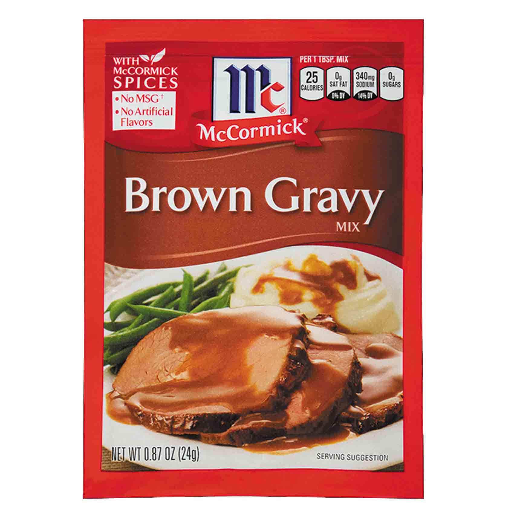 How to make brown gravy: Mccormick brown gravy mix, beef drippings, water. With mccormick recipe mixes, each flavorful meal is made with natural herbs and spices that don't contain any msg or artificial flavors or colors. If you need an easy homemade recipe, this is for you! 3 or 4 pork steaks or pork shoulders 2 regular cans cream of onion soup 1 pkg mccormick brown gravy mix potatoes or rice.